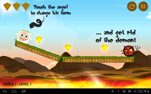 You’ll have to change devils and angels into circles or into squares by tapping them. It's all about following the laws of physics and using your logic!