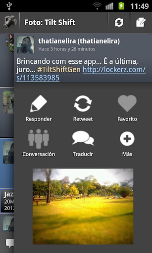 You can perform the common actions you do on Twitter and also customize your searches to the maximum by selecting the language to translate the tweets, to filter messages that only have pictures or video, view messages received or sent by an user, to filter by geolocation, etc.. You can also notify the search results, share and more.