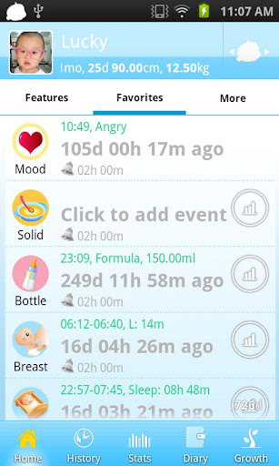 .Track baby mood, breast feed, bottle, solid, sleeps, pee/poop, health, hygiene, vaccination, medicine, teeth and more